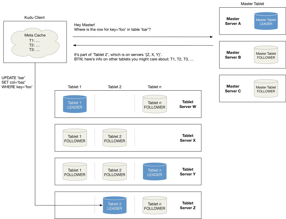 Kudu에서 데이터를 읽기 전 가장 먼저 해야할 일은 찾고자 하는 데이터가 어떤 태블릿 서버의 어떤 태블릿에 들어가있는지를 찾는 것이다.