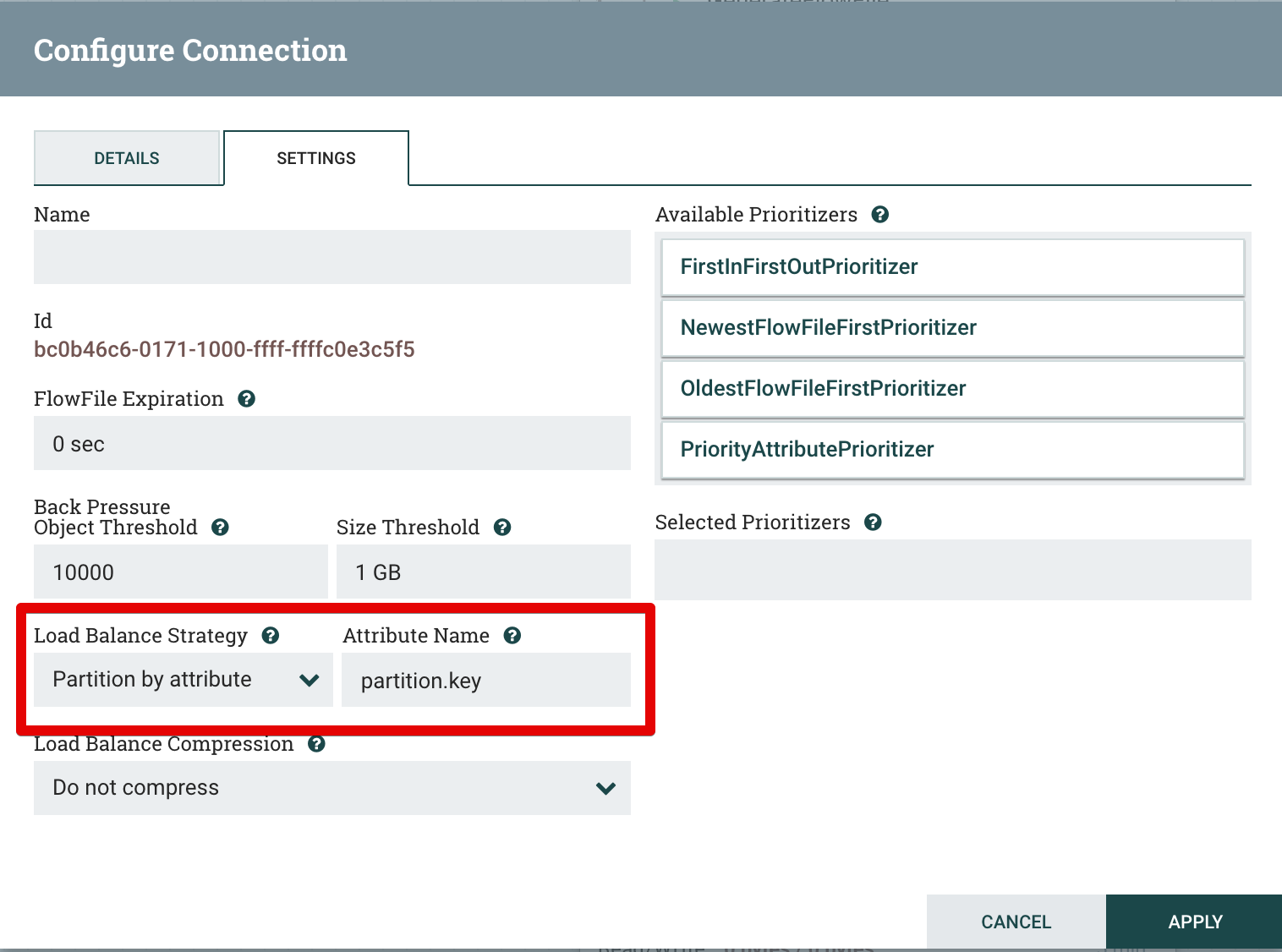 - Partition by attribute : Flowfile의 특정 attribute를 통해서 로드 밸런싱 함