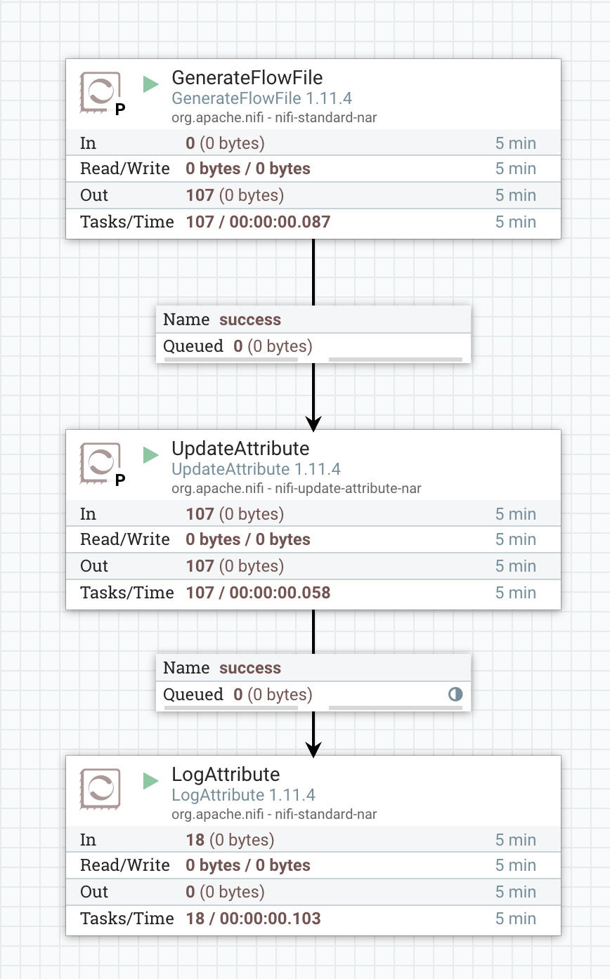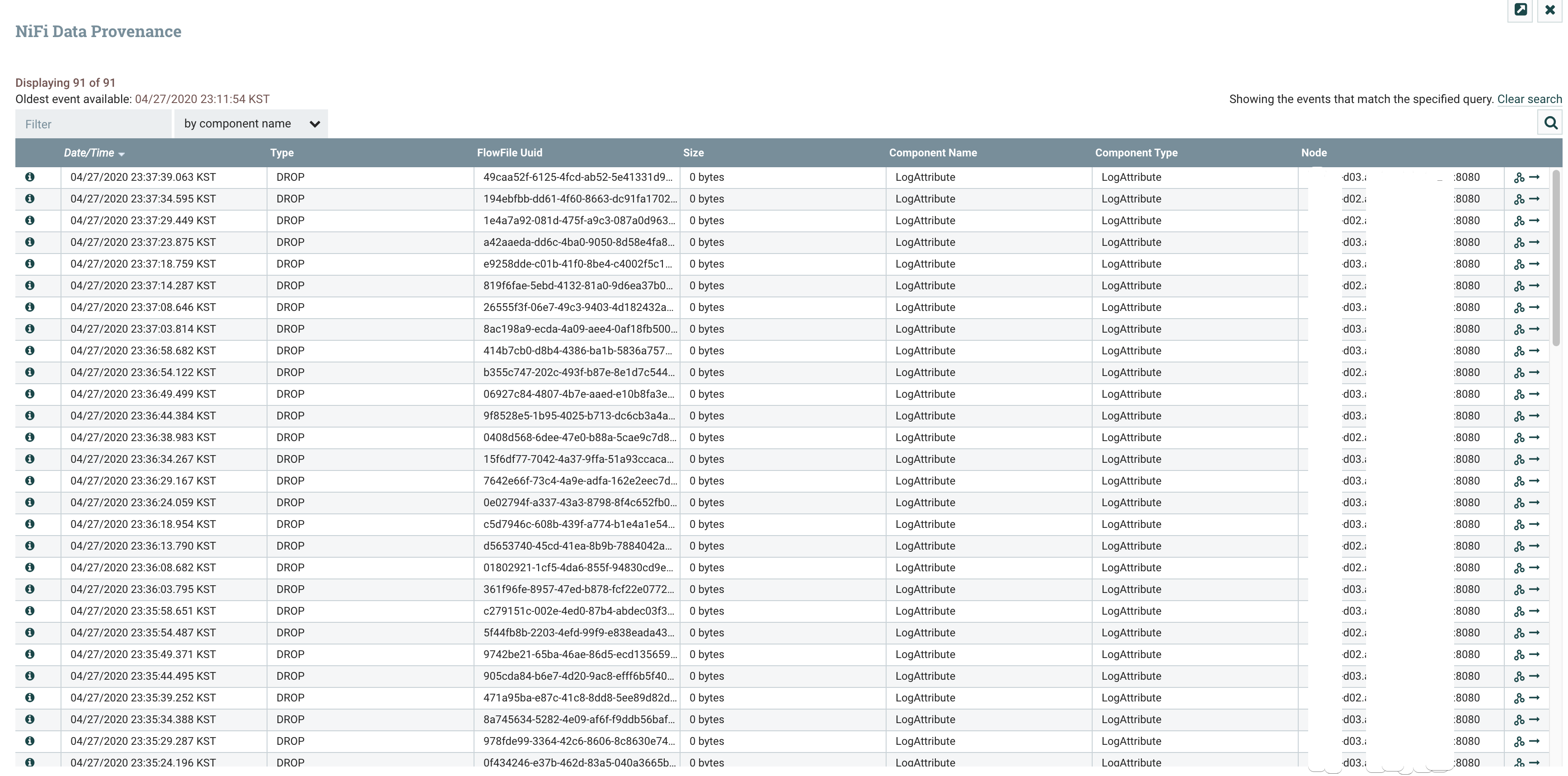 - LogAttribute(All Nodes) : 전달받은 Flowfile의 Attribute를 로그로 출력